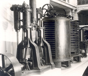 Az első "igazi" (kompresszoros) hűtőgépet Carl von Linde fejlesztette ki 1876-ban. Ennek hűtőközege ammónia volt. (A képen ez látható - nem kimondottan háztartási gép kivitel.)