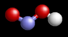 A hno2.pdb koordináta fájl térben megjeleníthető a https://sourceforge.net/projects/openrasmol/ címről letölthető molekulamegjelenítő programmal