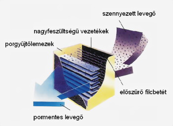 egy lakóhelyiségben alkalmazható elektrosztatikus porleválasztó elvi működési