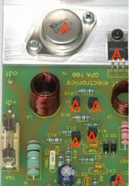 Egy erősítő részletén az A-val nem jelöltek passzív áramköri elemek.