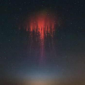 Zivatarfelhők fölött 40-50 km-es magasságban, villámlások idején keletkező, akár 50 km függőleges