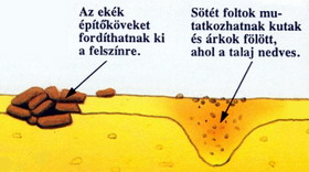 található falmaradványok fölött kisebb a talaj nedvességtartalma - ezáltal kisebb