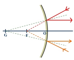 - A főtengellyel párhuzamos sugarakat a domború tükör úgy veri vissza mintha a tükör mögötti fókuszpontból