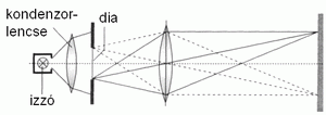 egy diavetítőn mutatja be a kondenzorlencse