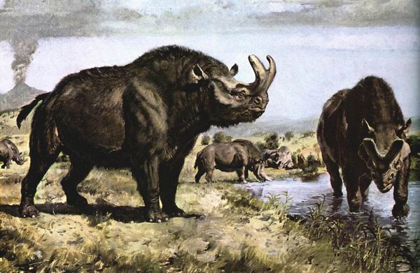 Brontotherium két és fél méteres vállmagasságú patás - Zdenek Burian cseh festőművész képe