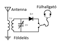 Egy nagyon egyszerű, detektoros vevő kapcsolási rajza.