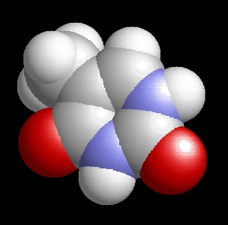 A Timin.pdb koordináta fájl térben megjeleníthető a https://sourceforge.net/projects/openrasmol/ címről letölthető molekulamegjelenítő programmal